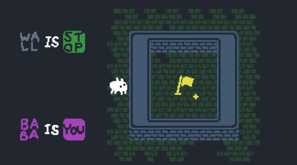 It's an award-winning puzzle game where the rules themselves are present as blocks that can be moved to change them. By pushing blocks next to each other, or apart, you change how the level works with often unexpected results and interactions. Move the word Baba Is, next to the word Rock, and you become a rock. Separate the words Water Is Sink and you can walk on water. Move the word Wall Is, next to the word Win, and you just have to touch any wall to win.