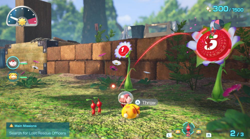 You play the diminutive commander of an army of minute plant-like aliens called Pikmin and explore an earth-like planet's gardens and houses for "treasures", such as a fidget spinner or a battery. You use the different types of Pikmin to get past and destroy obstacles and defeat hostile creatures; each type of Pikmin has its own abilities, such as burning, freezing, or illuminating, and using each one for the right task is essential. Another part of your army is Ochi, a strange dog-like creature you can use to ride over bodies of water and help your Pikmin fight, move treasure, and destroy obstacles.
